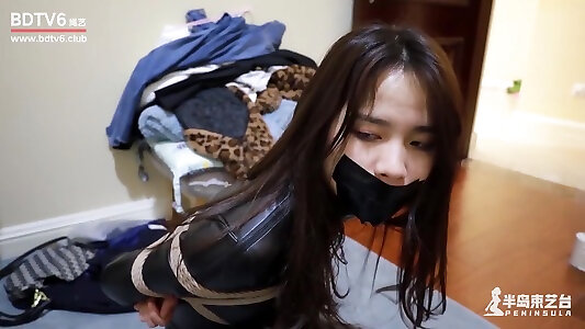 Chinese Doll Bondaged Penetrated With Belt Cock Tantalized With Scorching Wax By Two Dominatrixes