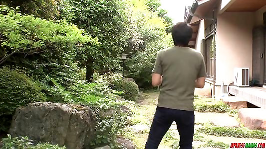 milf rie tachikawa con tetas enormes intenta un jizz-shotgun en su coño lanudo
