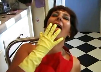 femme de ménage cougar super chaude munches que vous nettoyez avec spandex nettoyage gant sur