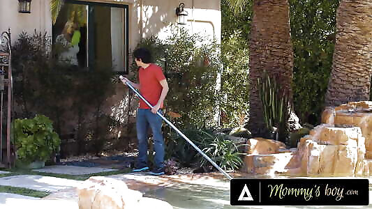 le fille de maman - la belle-mère solitaire rachael cavalli taquine son beau-fils avec ses énormes seins! sperme sur les seins!