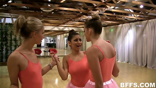 de gigantesques ballerines boobed séloignent après la pratique de la danse en raillant les poons crus