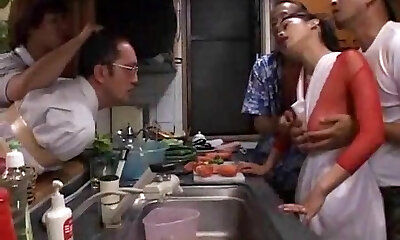 Lewd hubby invites a new worker to his house where they penetrate Nao Kato