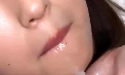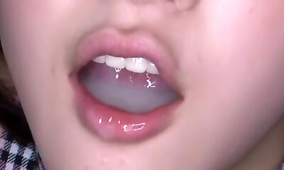 azjatyckie młody gal połyka super-steamy jism dressed w a usta otwieracz