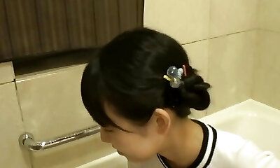 Tiny japanese schoolgirl felled up by senior male