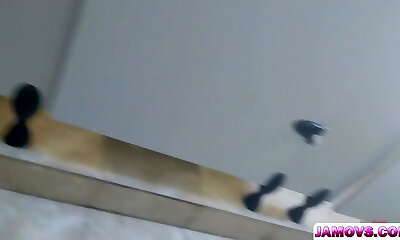 Kinky doctor inspects cute Japanese schoolgirl cunt and tits