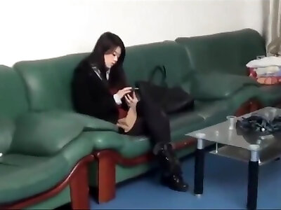 la poliziotta giapponese rilassa la prigioniera con il suo lavoro alla moda